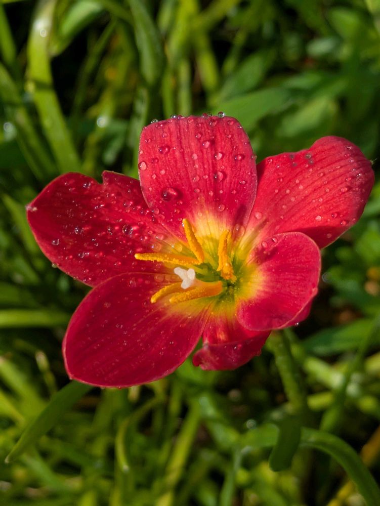 ゼフィランサス プライドオブシンガポール 水やりの時に、初開花を発見。6時には咲いていませんでした。