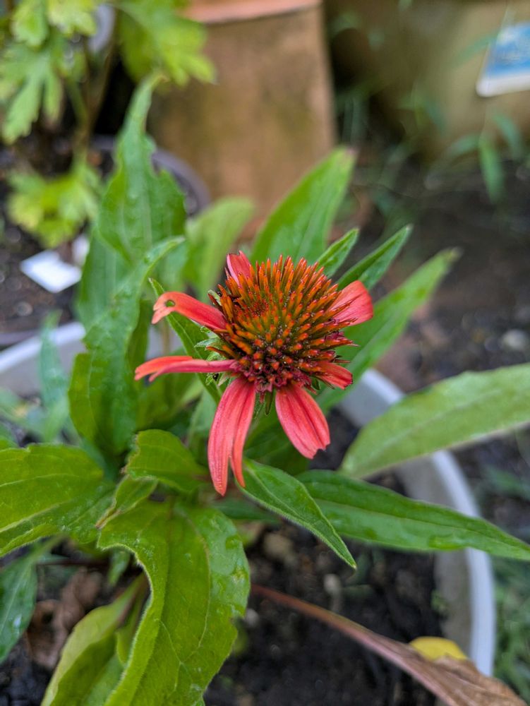 エキナセア ダブルスクープマンダリン 埋もれて育ちが遅いから、鉢上げしました。本当は綺麗な花です。