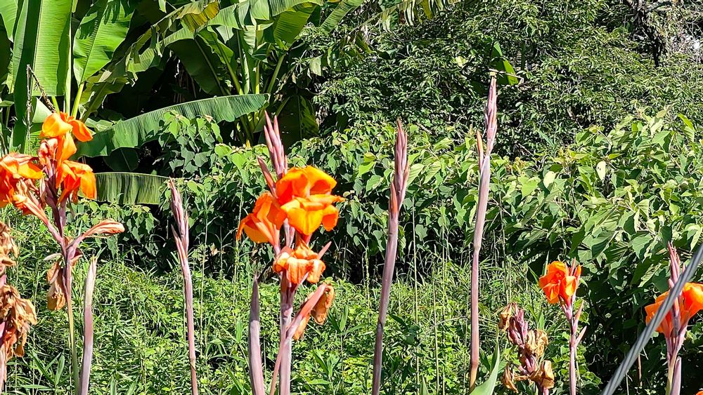 強い陽射しを浴び咲くカンナ