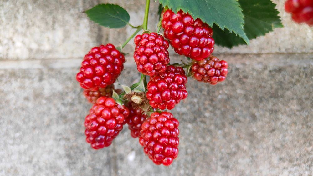 ブラックベリーの実が色付いてます