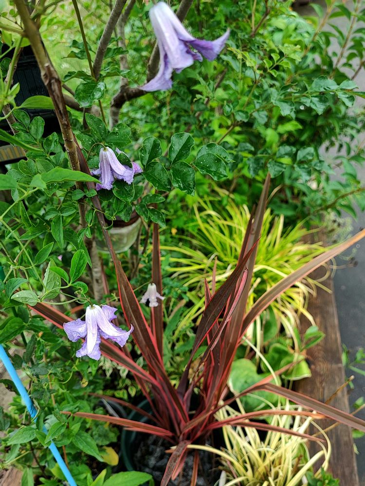 本日は雨です。写真は昨日、近所の物産館でゲットしたヘメロカリス2種類と、鉢増し後にまた咲いてきたクレマチスです。