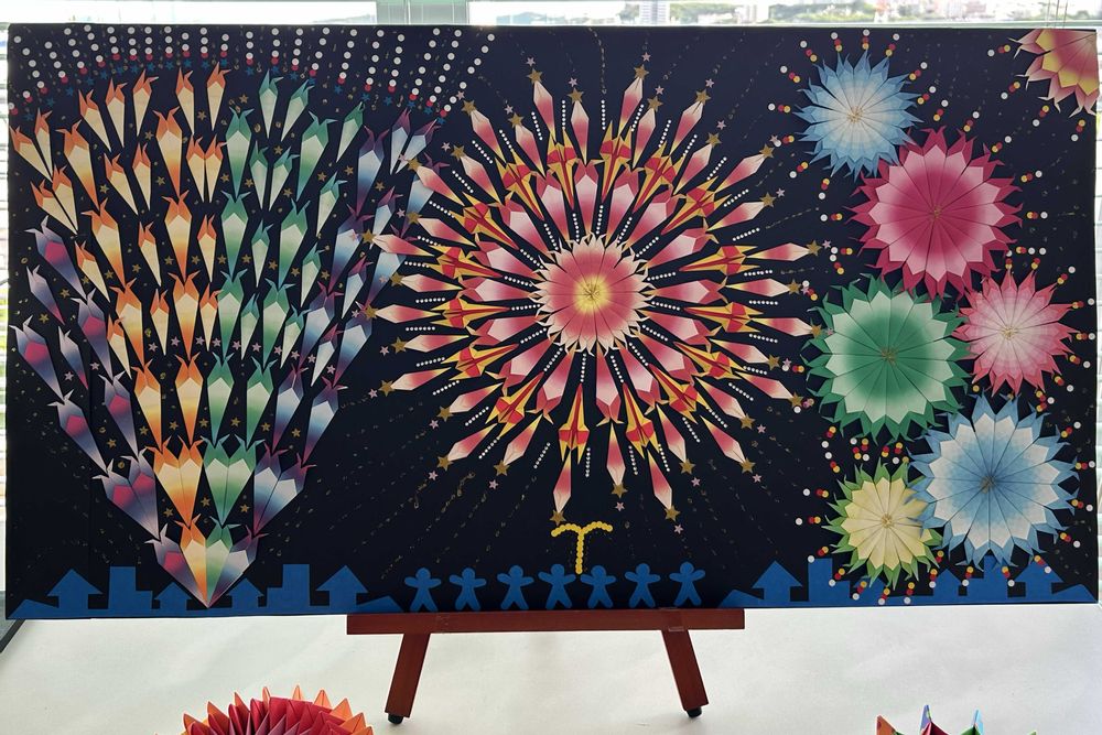 本物と見紛うほどの折り紙の花火が素晴らしいです。