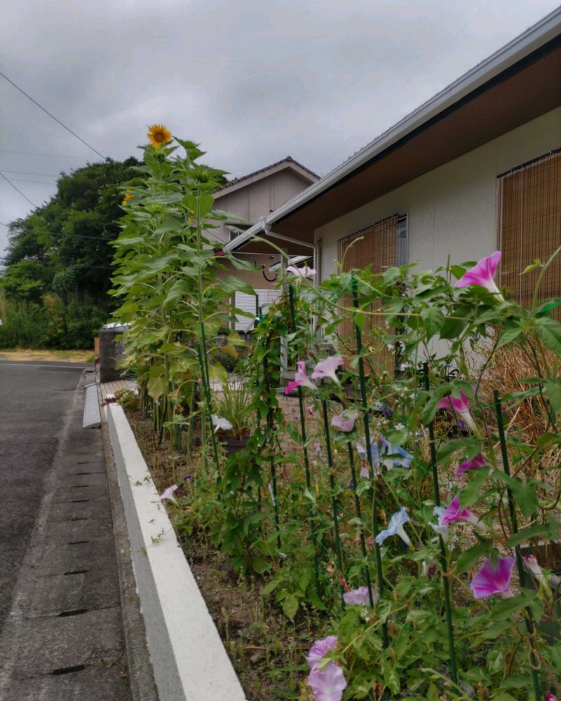お隣さんの朝顔とヒマワリ🌻です。