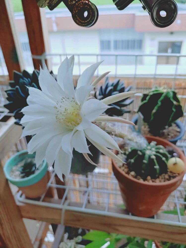 今日は違うサボテンが咲きました 今朝開き切る前に出勤で全開は見れてないですが…😄🎶🌱