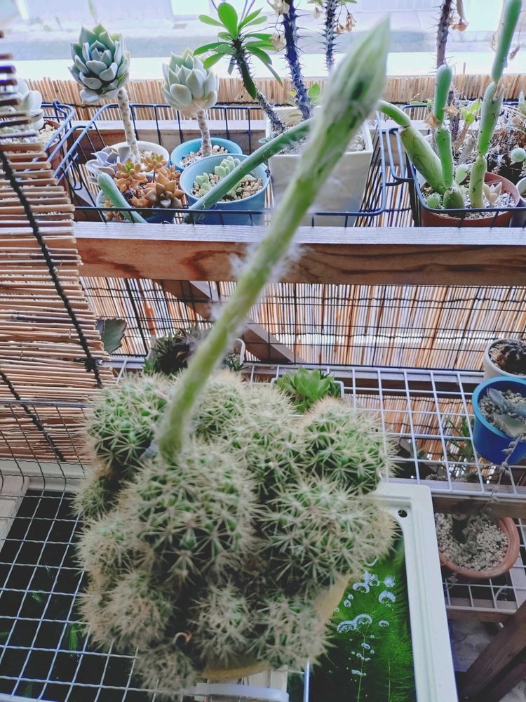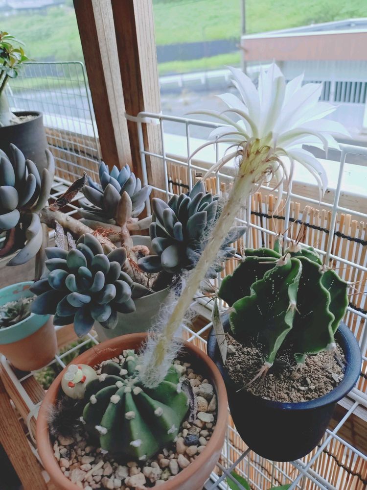 サボテンの形(種類?)は違うものだけど咲いた花はよく似たものがあったりと面白いです😊🎶