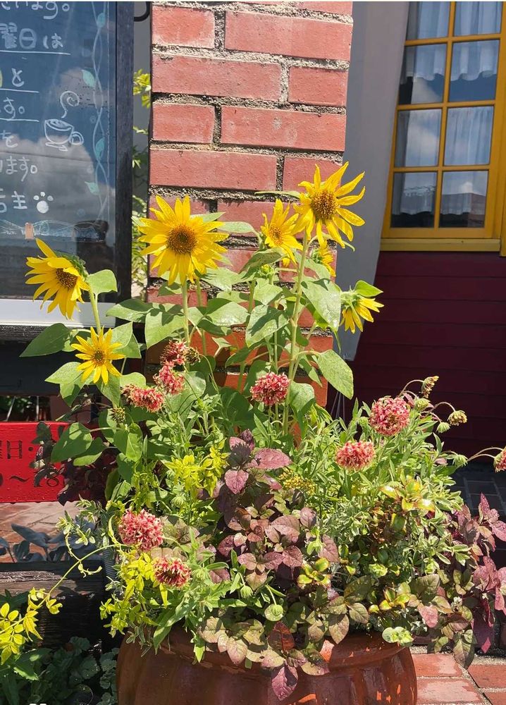 この夏初めてひまわりをウエルカムフラワーに植栽してみました✨