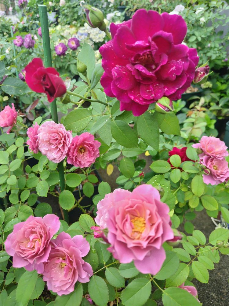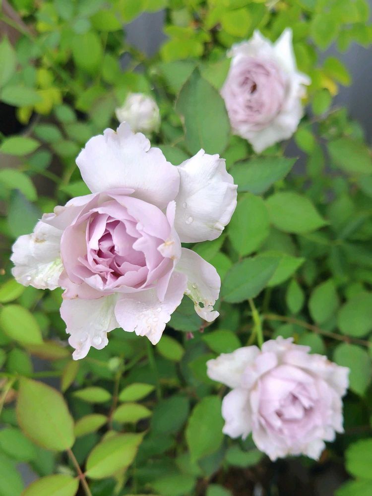 アパートの専用庭で、四季咲きバラをメインに約60鉢育てています。紫・白・桃色中心に集めて、香りが気に入ったり出先で一目惚れした植物たちです!