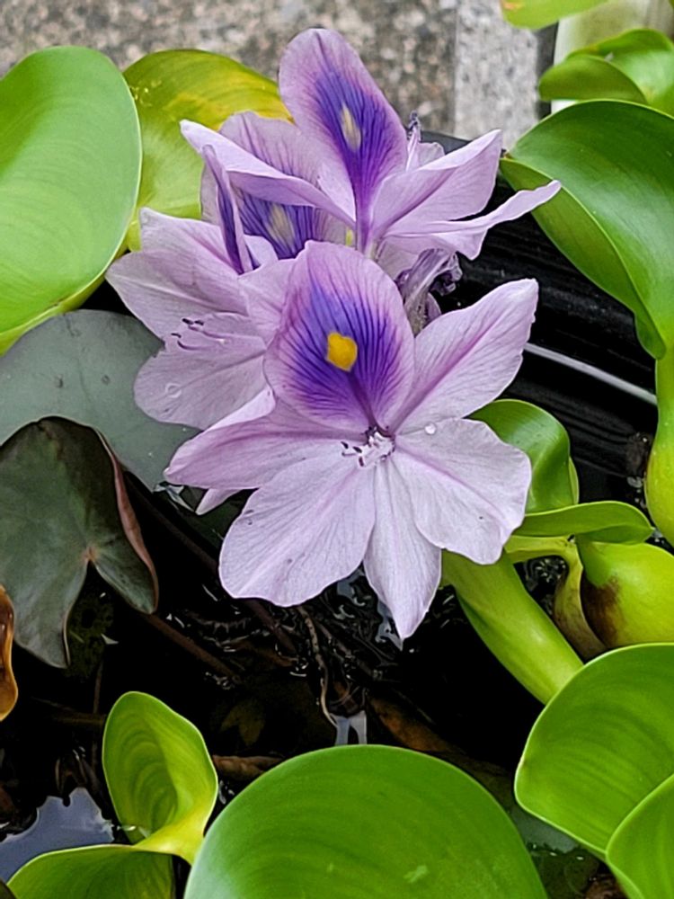 散歩中に見かけた水辺(火鉢ですが)のお花たち🌸