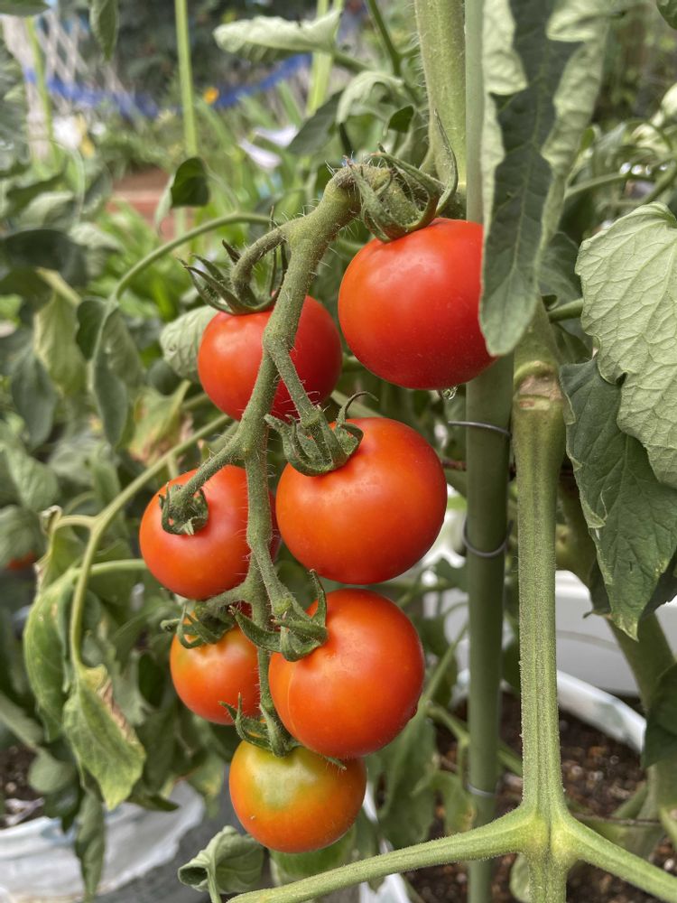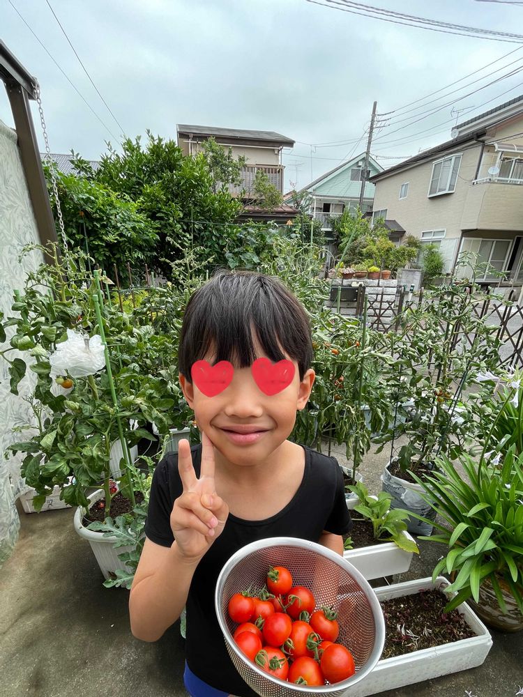 孫とトマト狩りしました🍅中玉ですがミニトマトに近い大きさです🙀孫は大喜び👦🏻