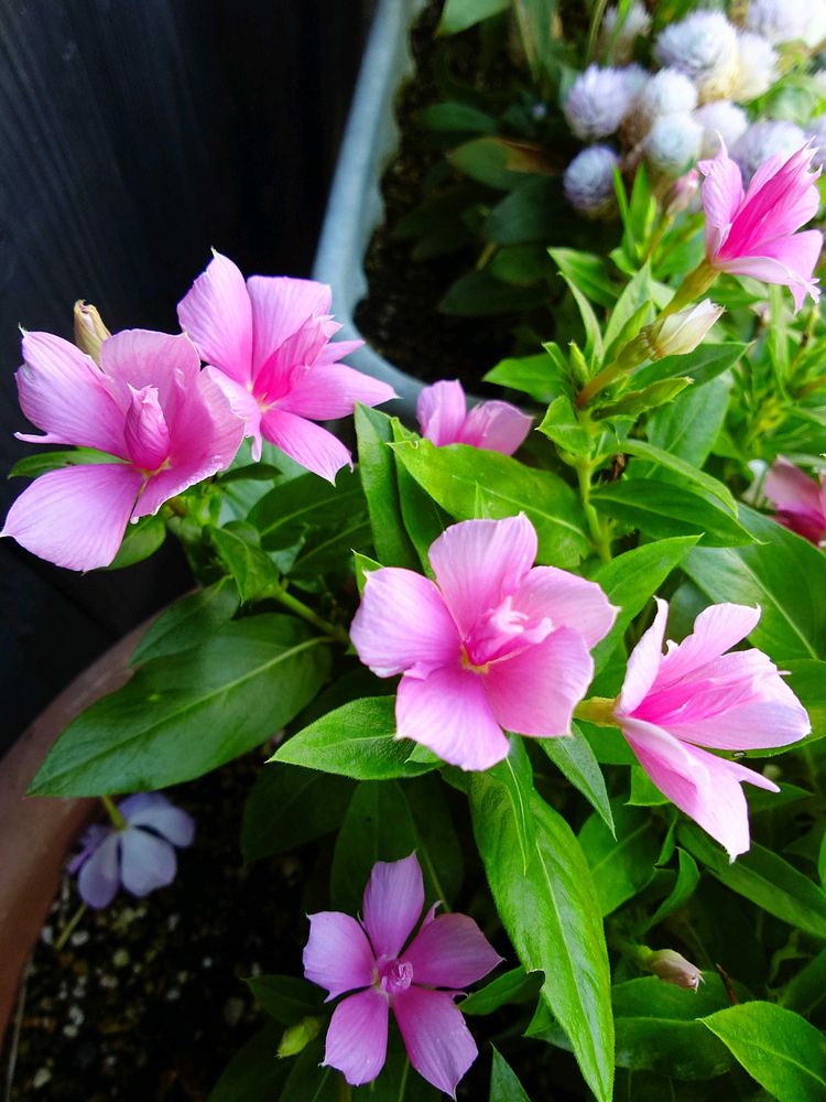 いつも見掛けるニチニチソウとはチョッピリ違う花姿に🤗可愛いのと花色も良いですネ