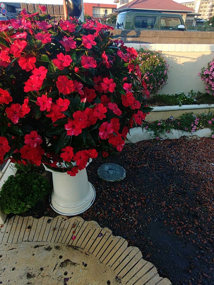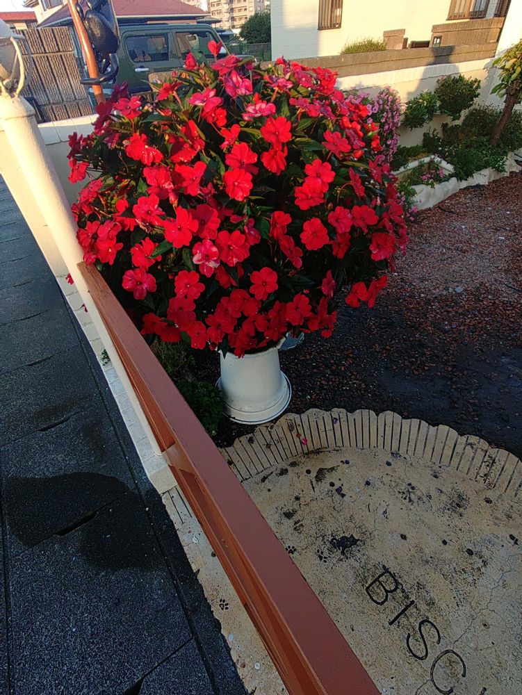 インパチェンスも朝、晩しか水やり🚿出来ませんが炎天下しっかり持ってくれてます。いまだに蕾をたくさんつけて、次から次に咲いてます。