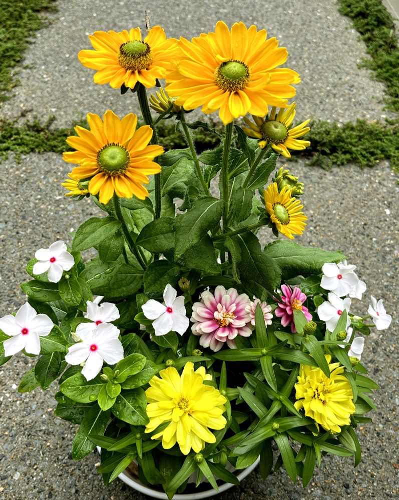 牡丹さんのジニア,ルドベキア,日々草(にちにちそう)の投稿画像
