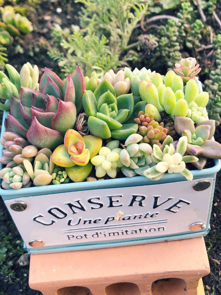 避難した多肉達を定位置に戻してたんてますけど脱線して寄せ植え♡