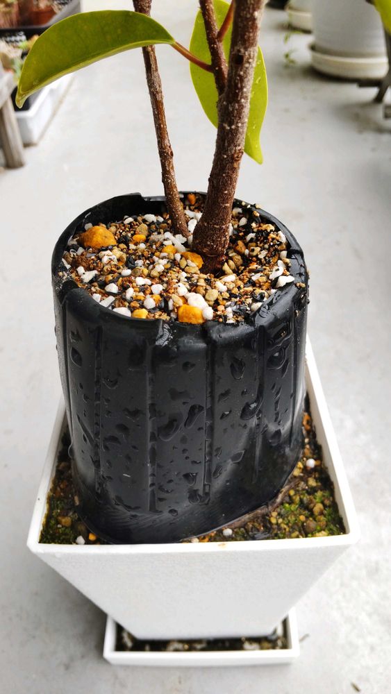 前に聞いたことがあったやり方気根の部分をビニールポットで囲んで土を入れる✨