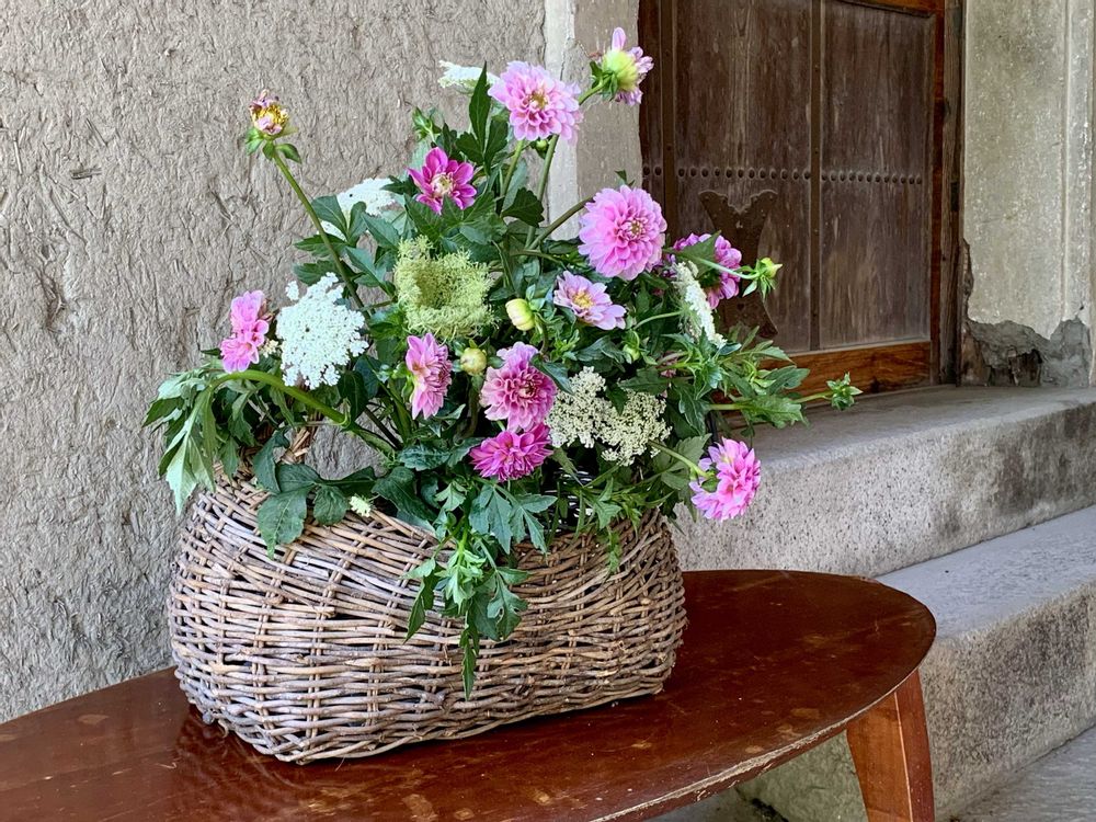 朝一番で庭の花を手折り.抱えて…