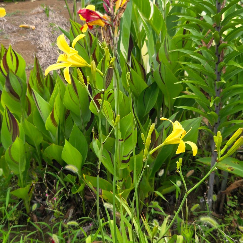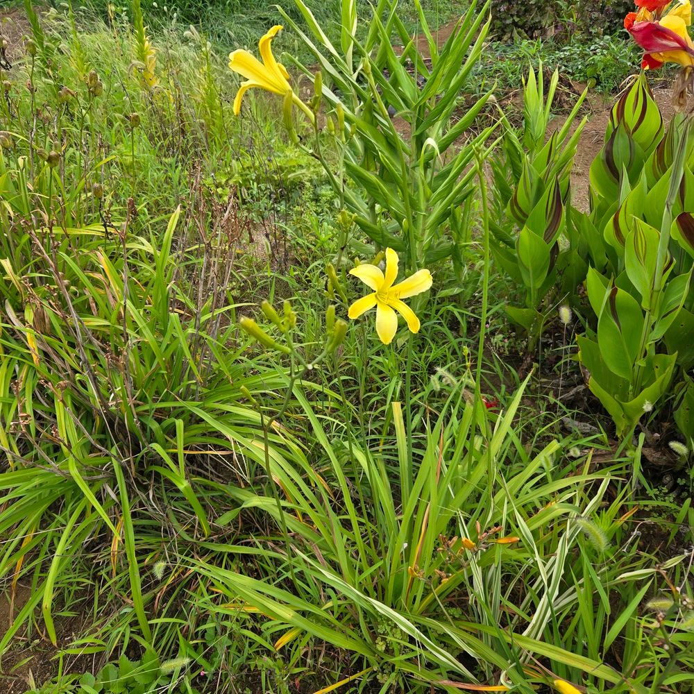 矮性種のネコヤマユウスゲは草丈1mくらいなので我が家においては中間的な立ち位置にあります。
