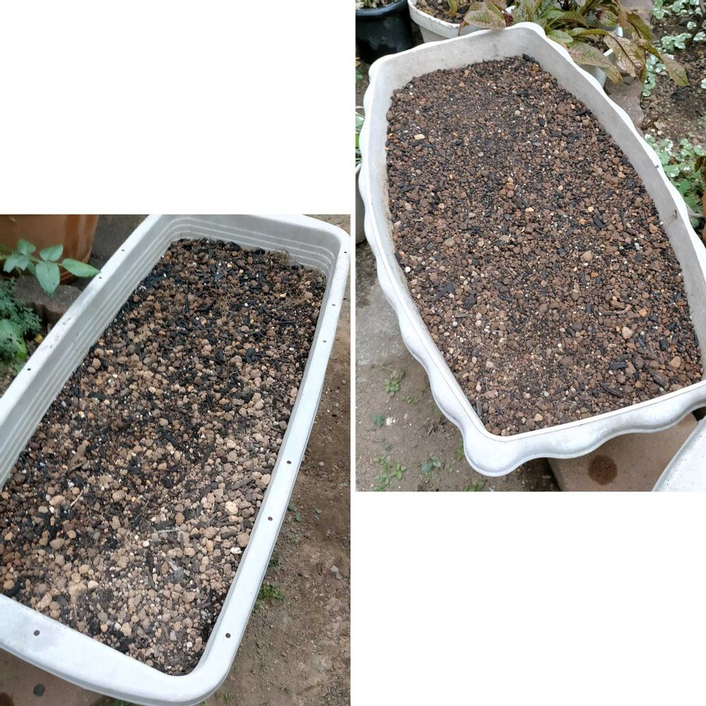 【2枚目】欲ばって多収を目指し、大きめのプランター2つに蒔きました。たくさん育ってくれるといいな😋