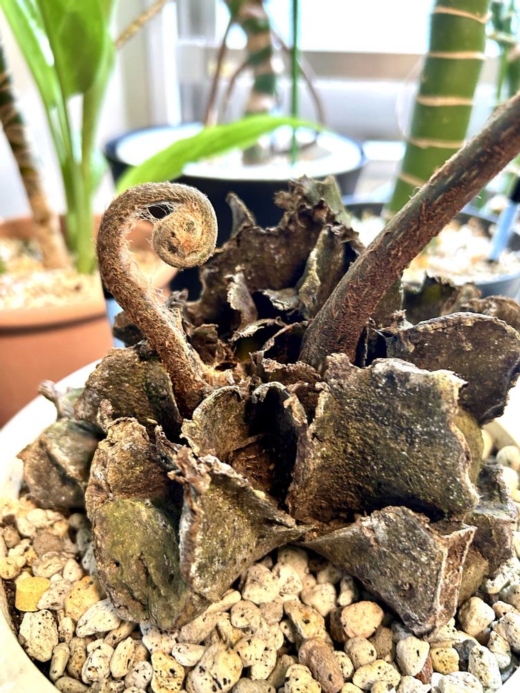 リュウビンタイ😊初めて新芽が出てきた😊なんか神秘的🧙🏻な感じ😊恐竜時代🦖から生きているシダ植物🪴ジュラシックパーク