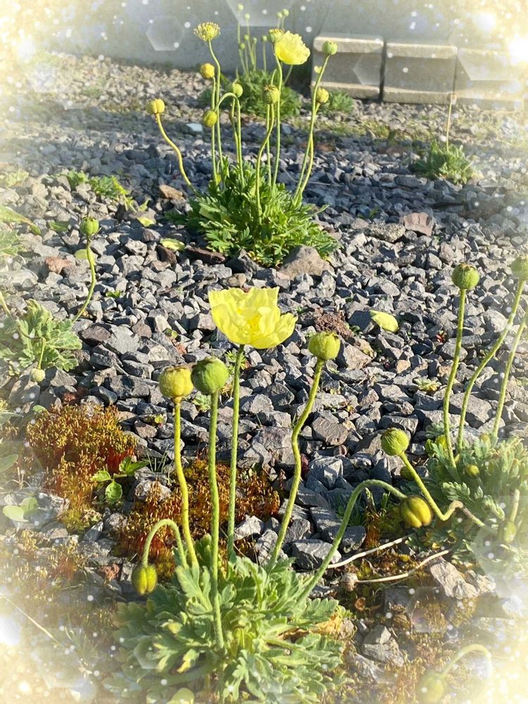 今日のたまに雨の中も元気に咲いている黄色いお花たち🌼💛💚