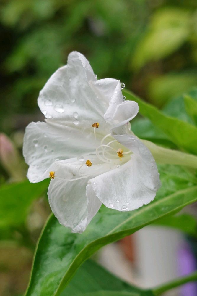 おはようございます🤗白粉花が水滴で透けてみえそうです🤍アサガオも素敵です🎵③④ヘクソカズラだ❗と思わず叫びました😀みかけは可愛いのにねぇ😁