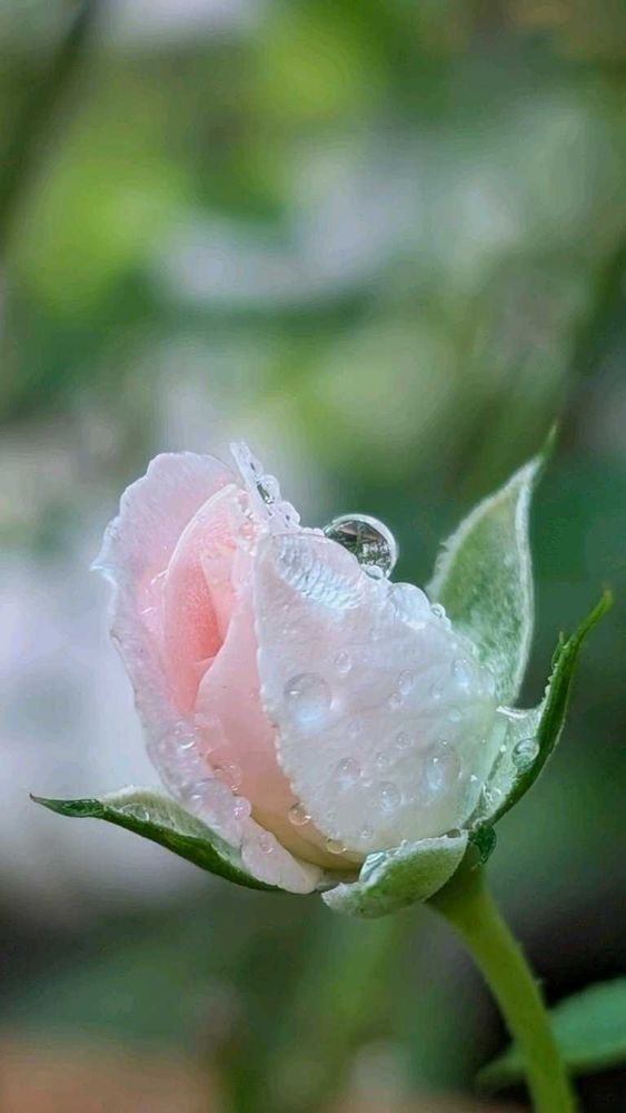 柔らかな薄いピンク色に雫💧がとてもみずみずしい🎶🌸