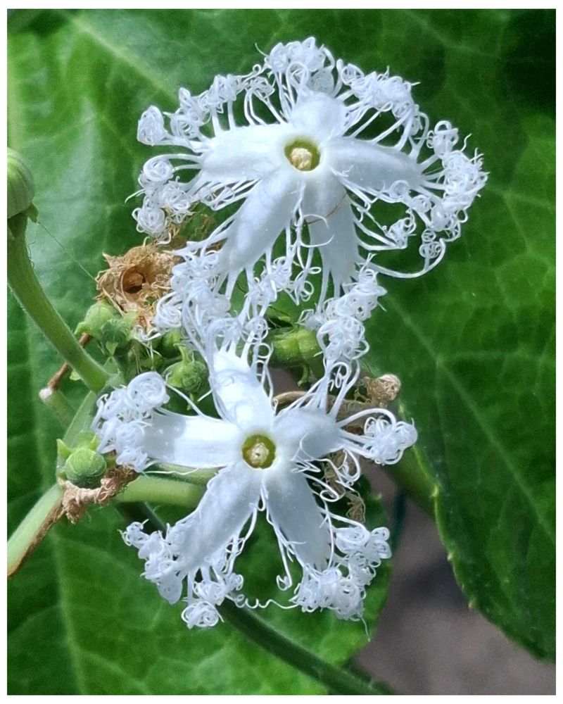 カラスウリとそっくりな花。でも、実を見たことなかったので、うちの近所のも、ヘビウリ🤔❓