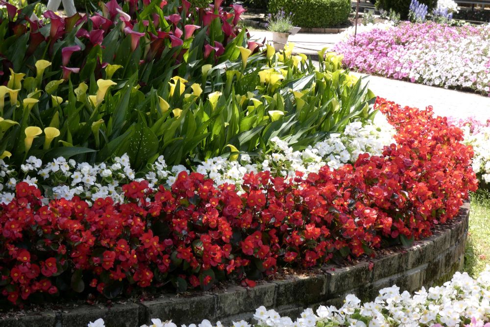 赤いベゴニアが目を引きます。