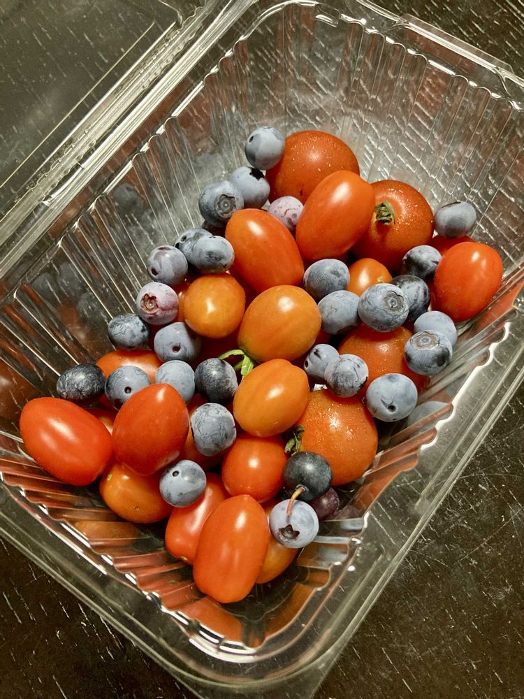 収穫したミニトマトとブルーベリーは、そのまま朝食に出しました♪♪フレッシュで美味しかったです😋