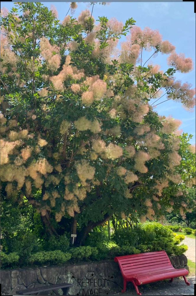 スモークツリーの木陰のベンチでソフトクリーム🍦を食べたかったけど…暑すぎてやめました😅