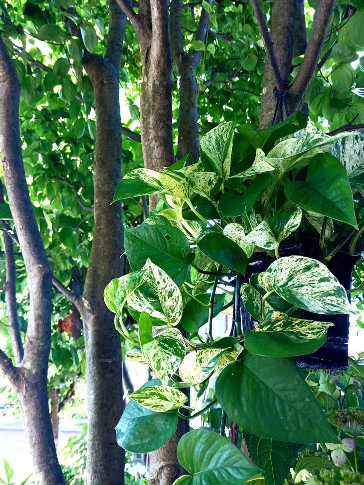 ここ1ヶ月半ほどヤマボウシの下でぶらぶらさせているポトスが元気いっぱい💪