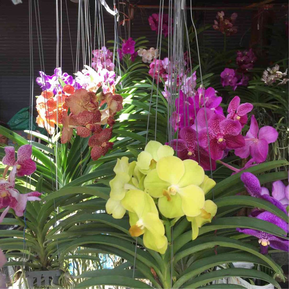 でも本日のご紹介は「今日のお花」のバンダで。こちらは売り物です。こんな感じでワイヤーで引っ掛けて色んな種類がぶら下がってます。タイ🇹🇭と言えばランですかね。