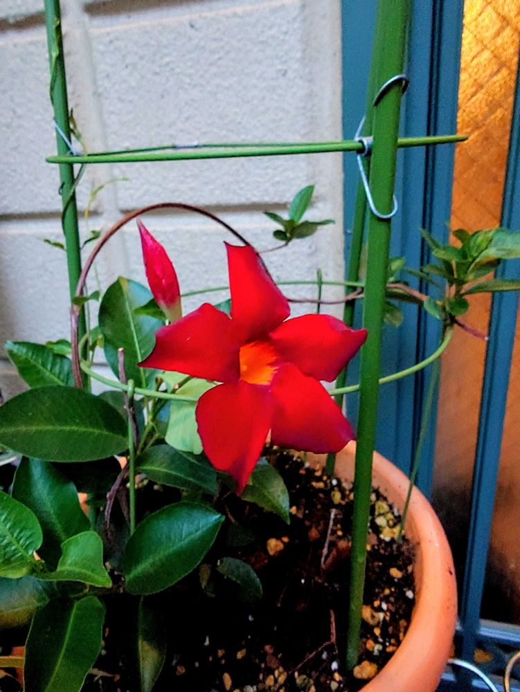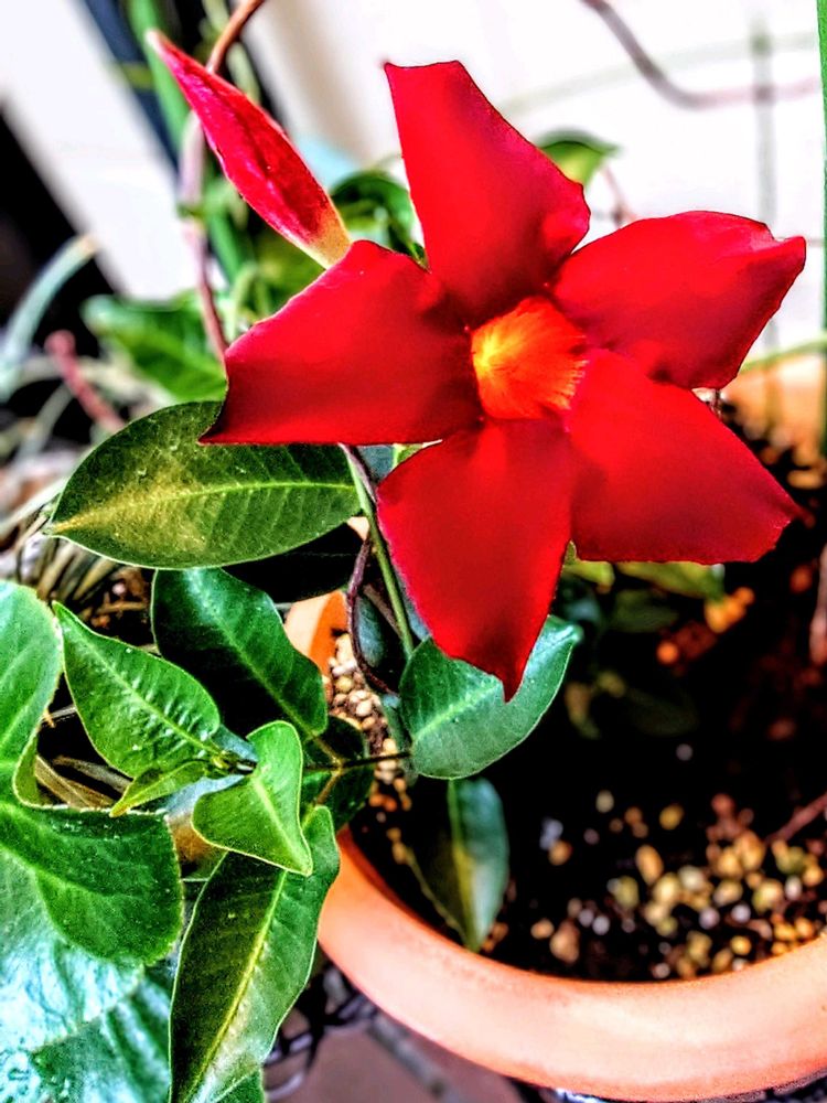冬越しのマンデビラ❤️💚❤️さん鮮やかに美しく咲きましたね‼️
