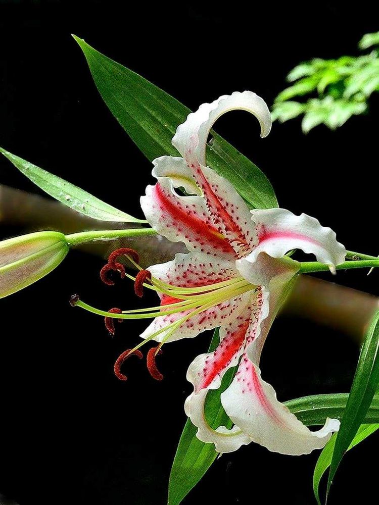 ピンクの花弁に赤い斑点、可愛いですね🩷「朝日浴び輝く姿鹿の子百合」(作者不詳)