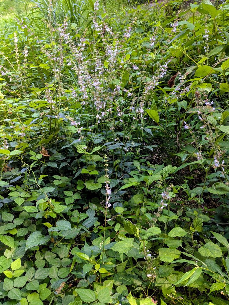 山の中の散策道はアキノタムラソウ(秋の田村草)ロード?になってます✨