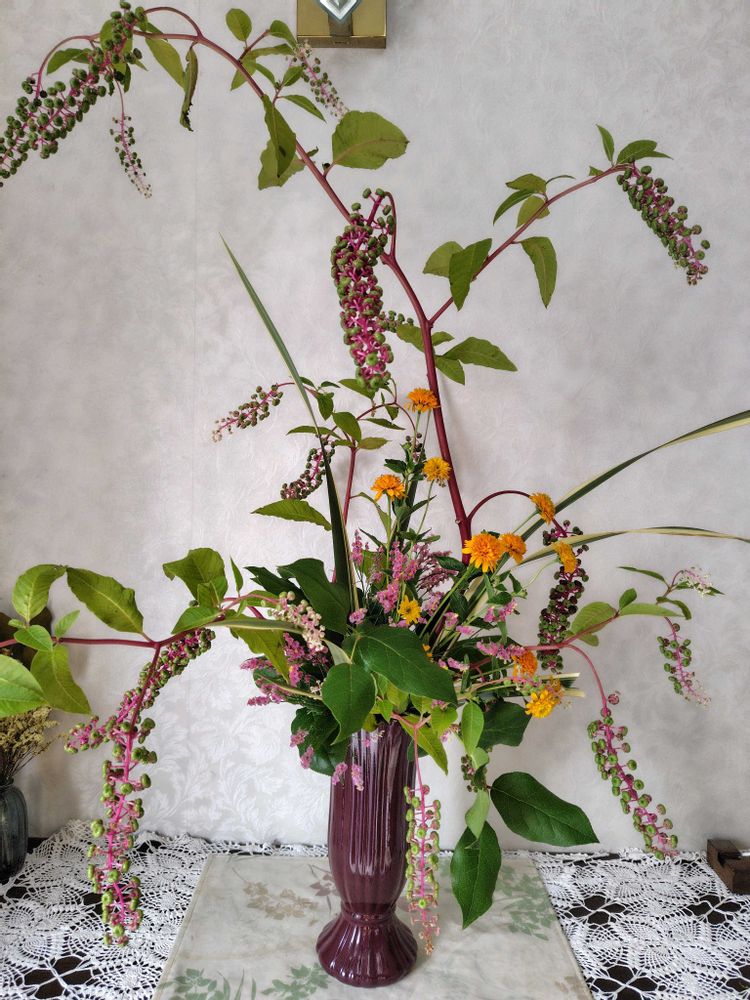 やまごぼう、すごい大きさですね😍よく花瓶がひっくり返りませんね🤣