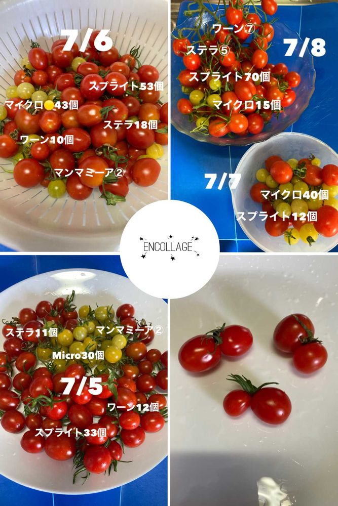 ①スプライトトマト、脇芽からの枝に連続で実が付きます。房取り出来ました〜🙌