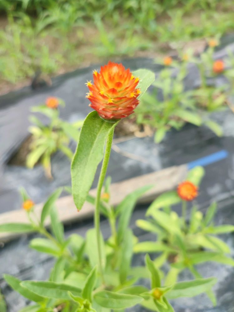 昨年は赤色、今年は、オレンジの千日紅にしました
