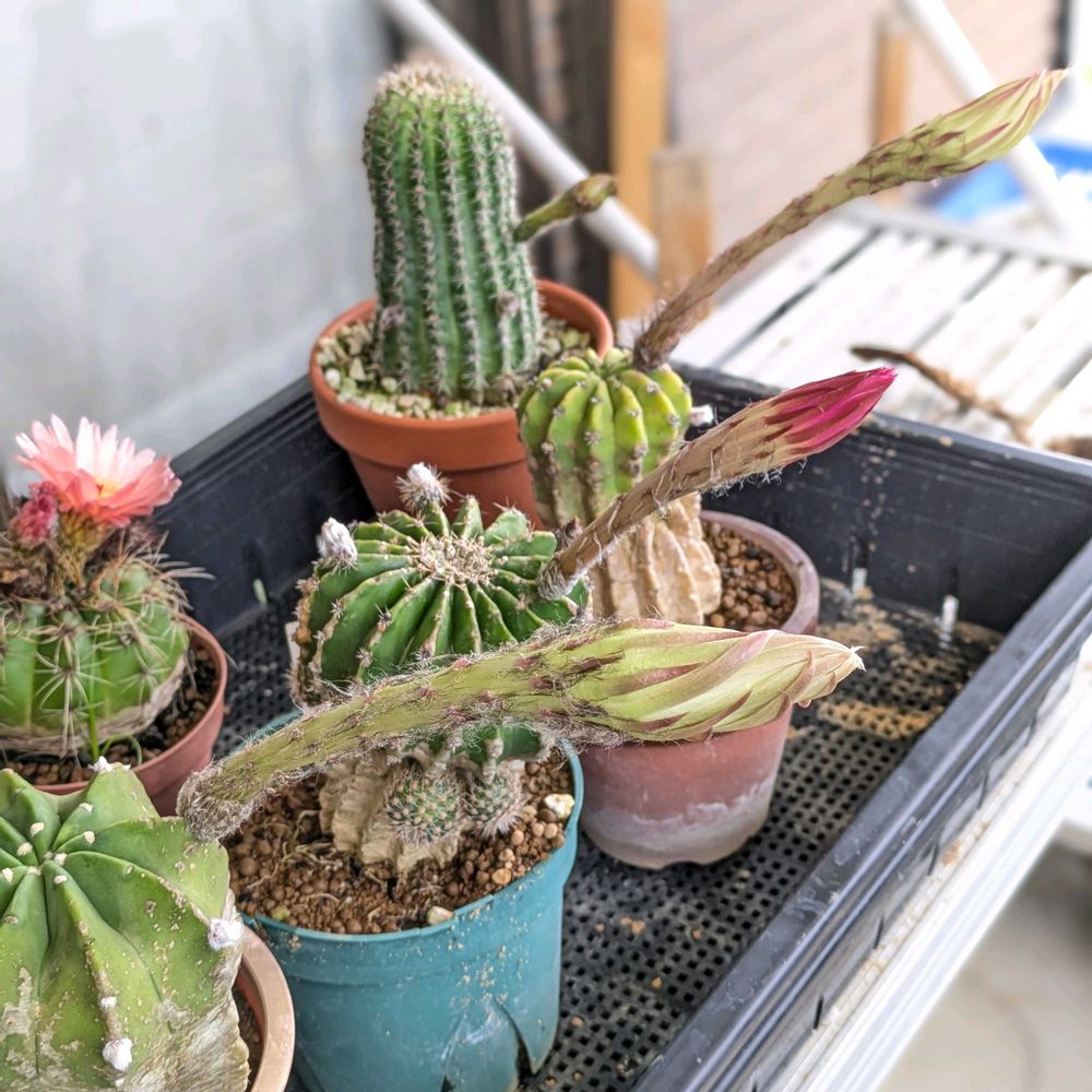 2015年にサボテンが花咲くことを知り、自分で買ってきたダイソーサボテンが次の年に咲いたのをきっかけに、どはまりしてます😅
