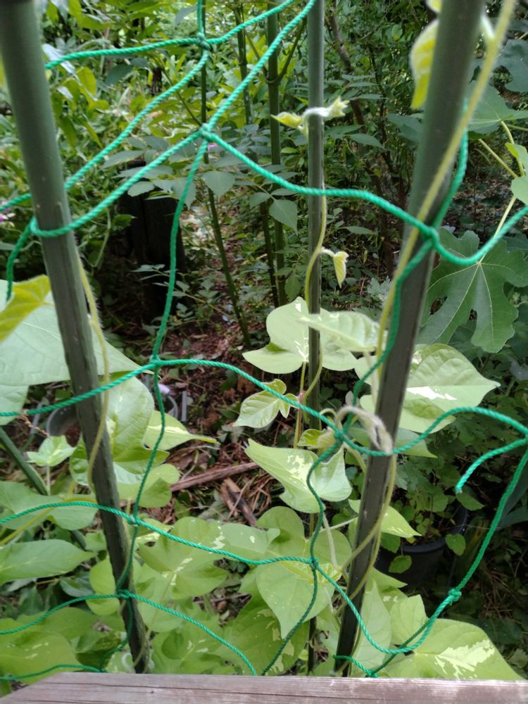 いつもは庭木に絡まって始末に追えず刈ってしまっていたのですが、花も咲いたし、今年は最後まで見届けるつもりです✊