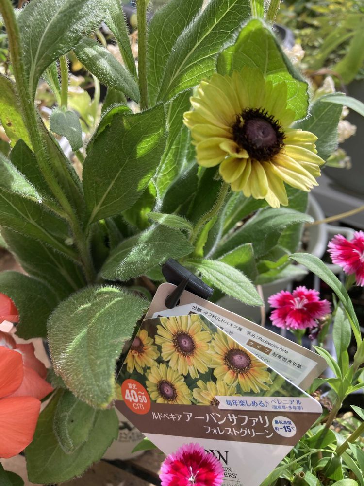 隣りに置いてあったグリーンがかったイエローもいいなぁと思って2つ買いました が 帰って来てプレート見たら黄色いほうは ルドベキアでした😅 ほんとボーっとしてるわ〜🤣