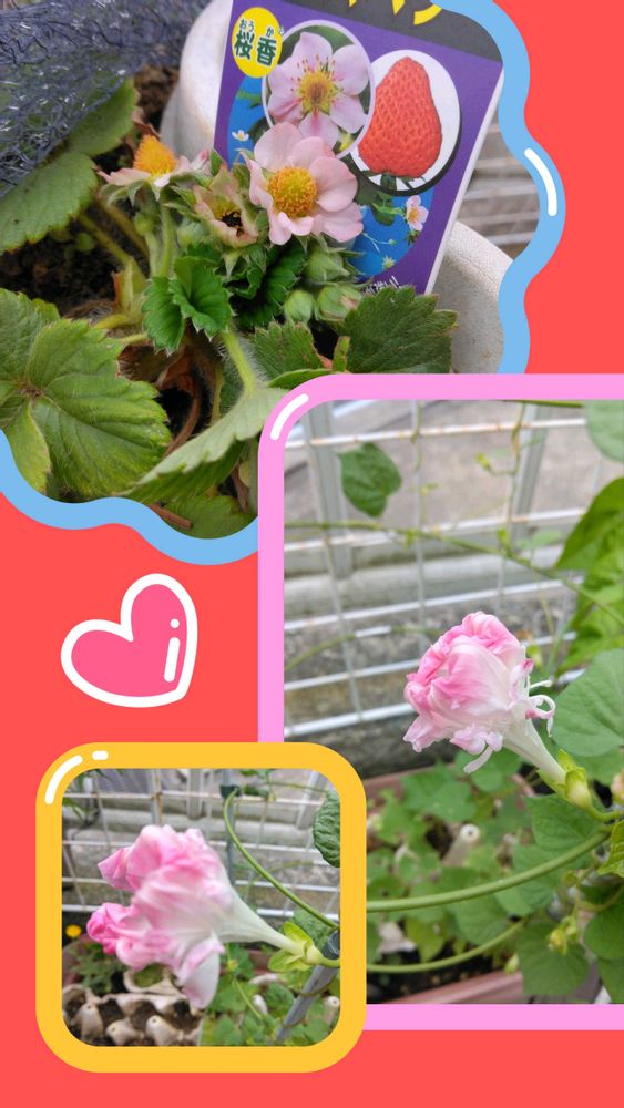 3⃣ 室内切り花蓮の蕾が花弁が開く?苺🍓プランター上段に着床した朝顔は去年の品種だけど色素薄いな