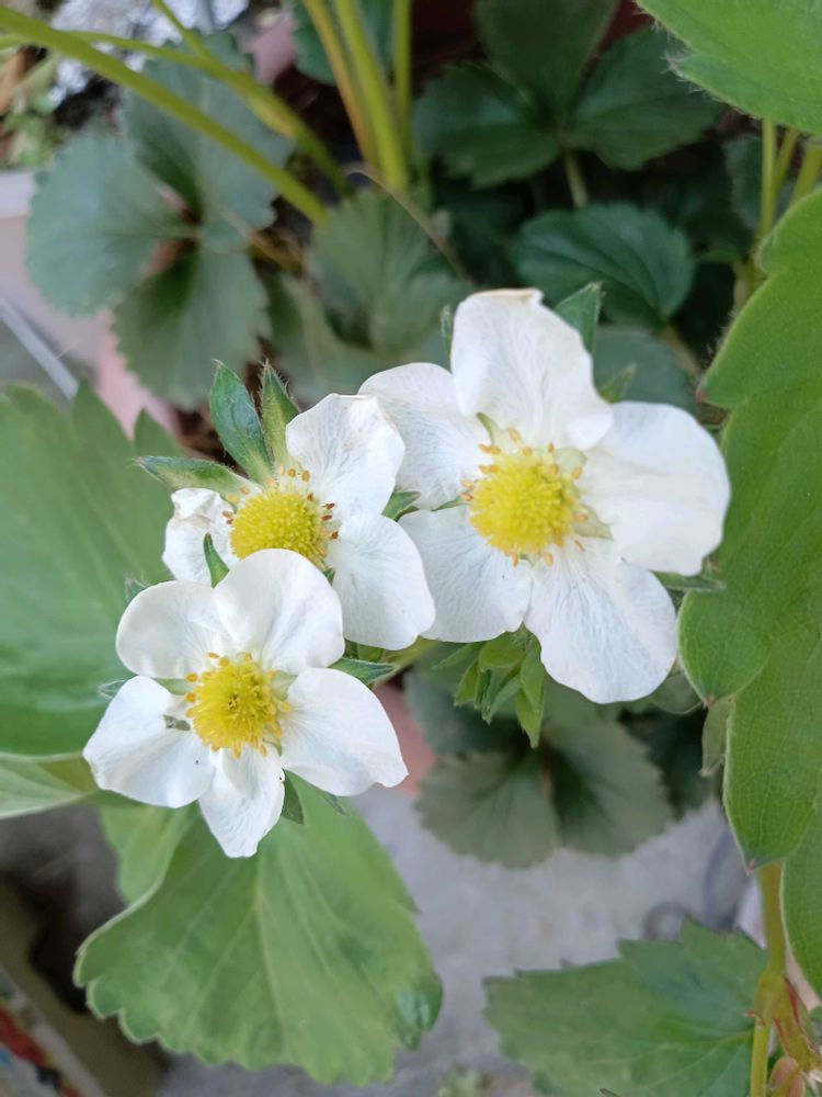 ①②③イチゴのお花…白いお花が可愛らしい✨️🤍