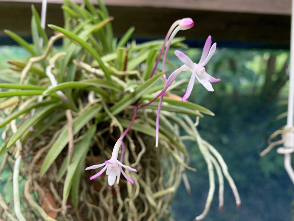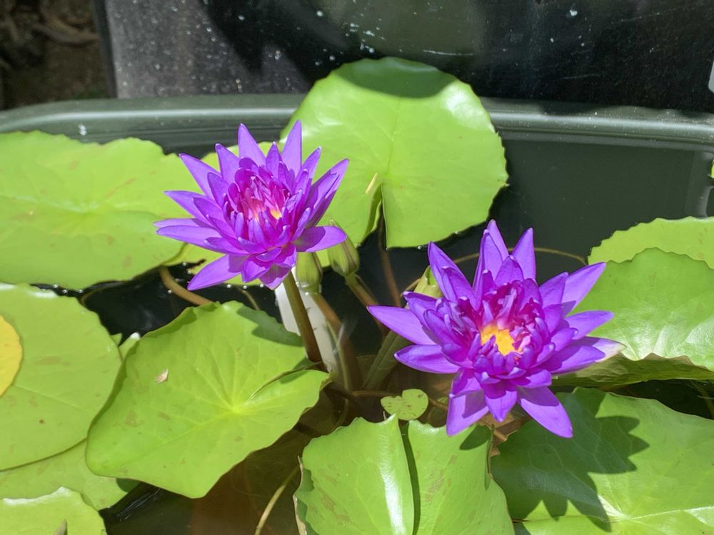 茶碗蓮🪷小舞妃の11番目が咲きました😀熱帯スイレンのキングオブサイアムがやっと開花しました😀ブルズアイは4つ目が咲いてます😀風蘭の紅花の猩々と和歌山産の紅花が咲いてます😊
