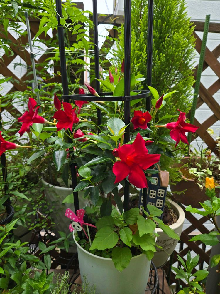 マンデビラ・アーリーサマーレッド❣️3年目、去年より沢山咲いてます😍