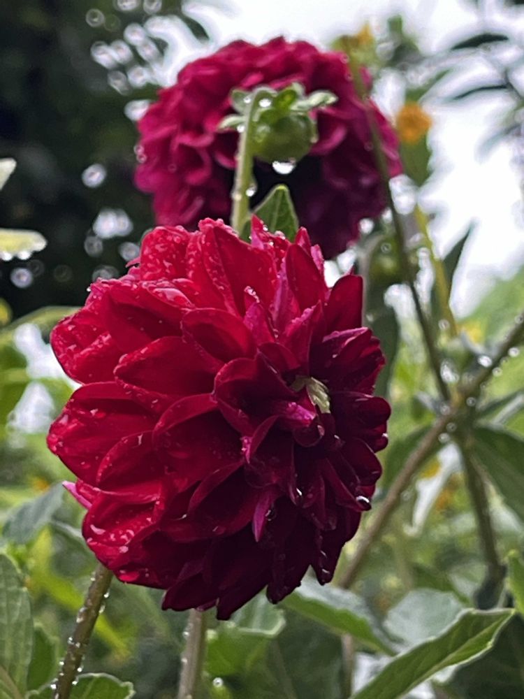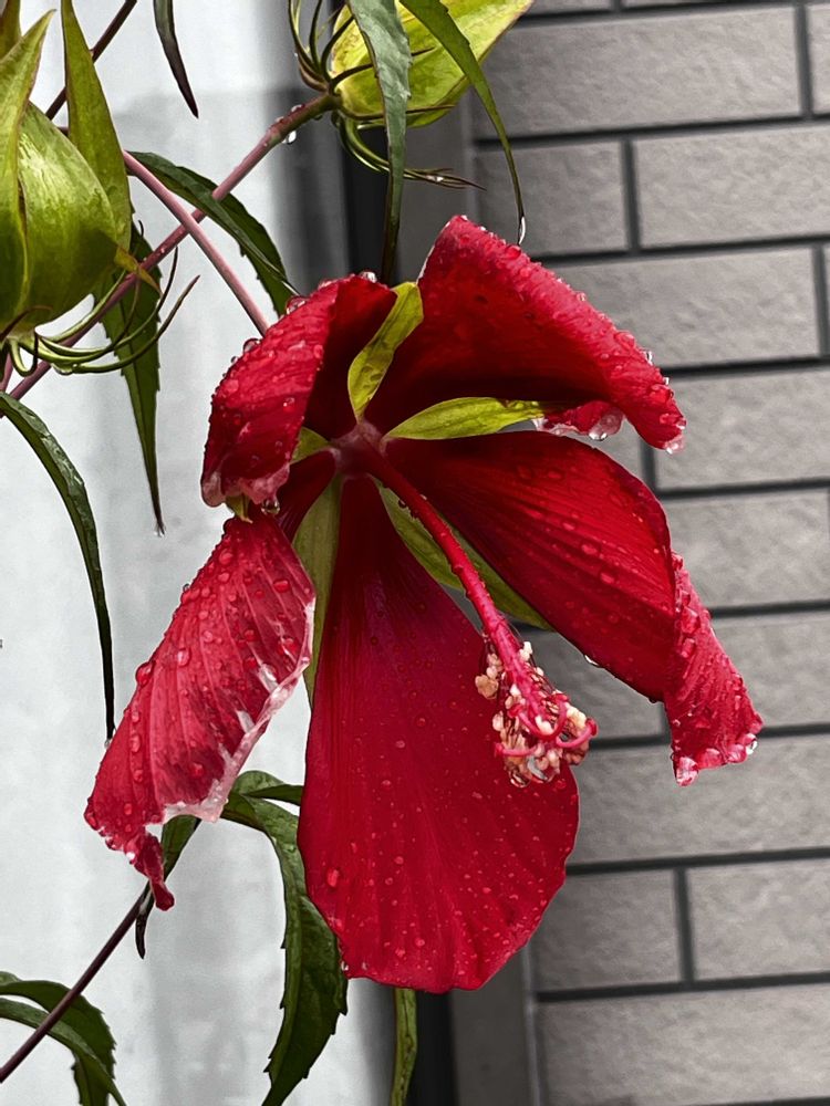 ☔の中の真っ赤なお花達、とっても素敵ですね❗