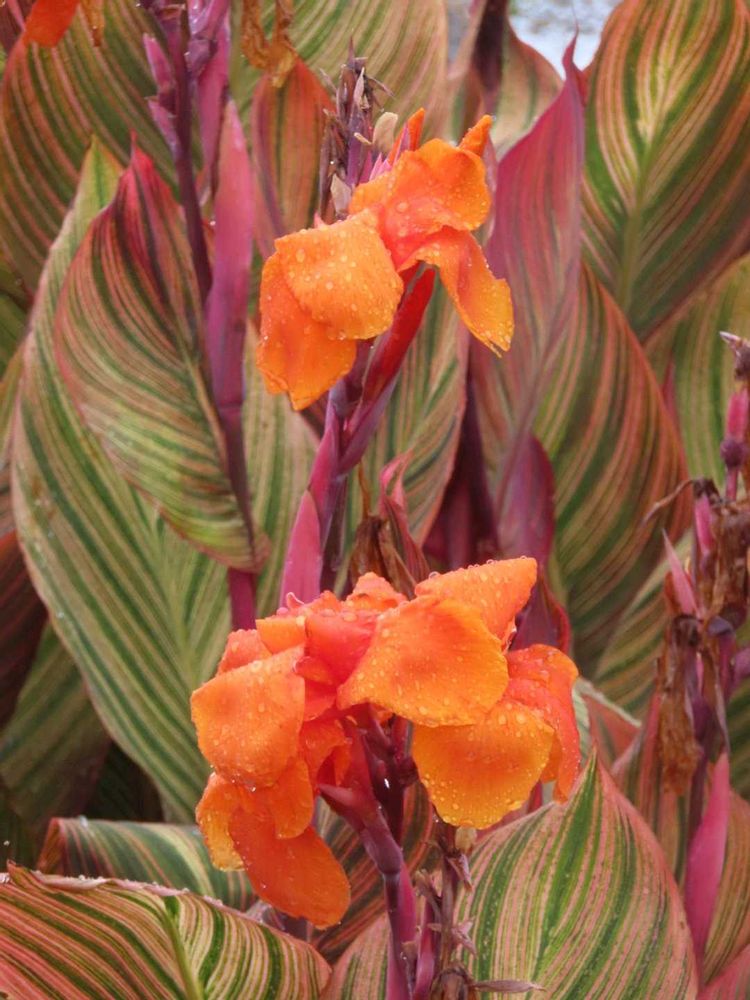 トロピカルな縞模様の葉っぱが美しいカンナに出会いました。