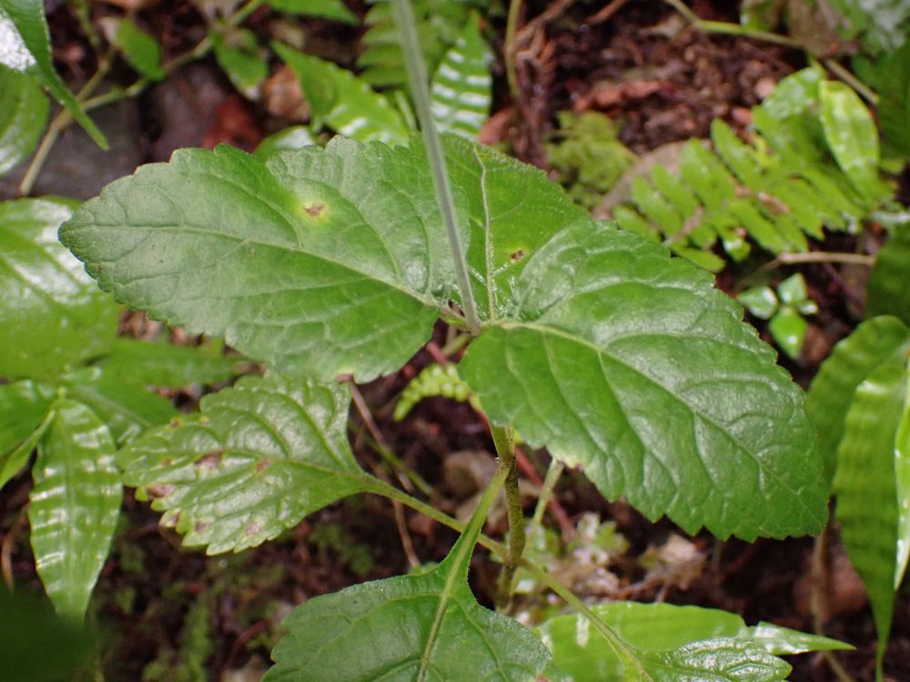 葉は、対生し、卵形、縁には、粗い鋸歯がありました。(③)