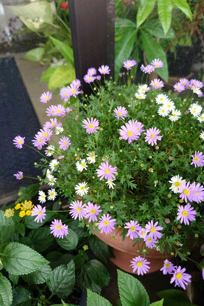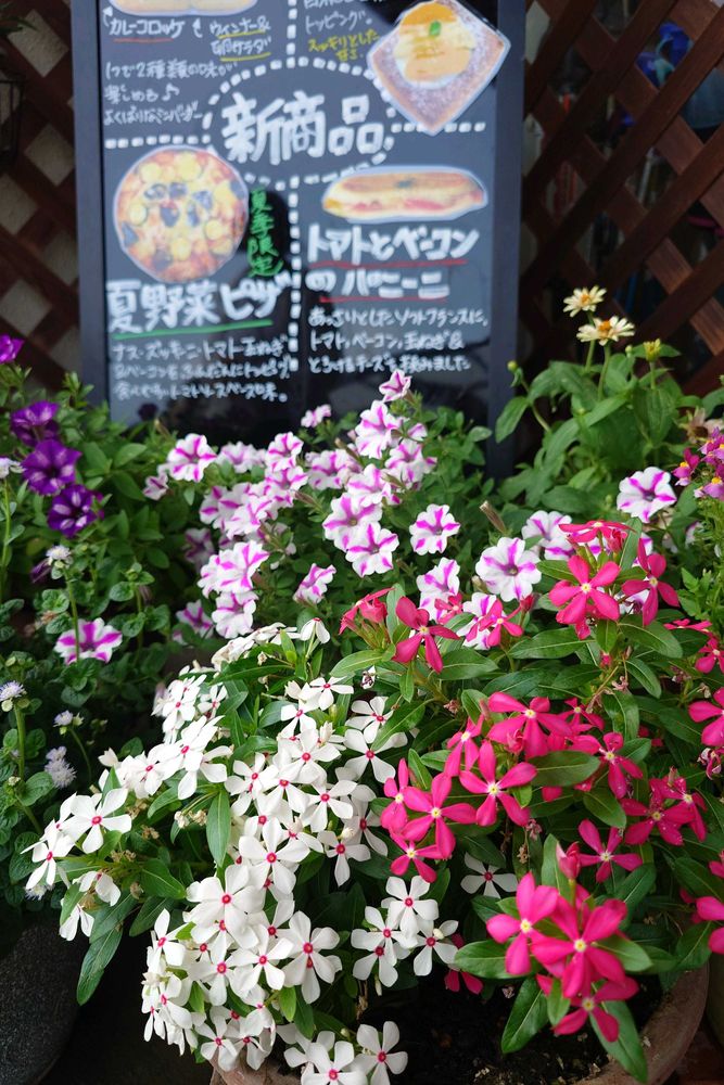 パン屋さんの店先、可愛いお花がたくさん🌸🌼