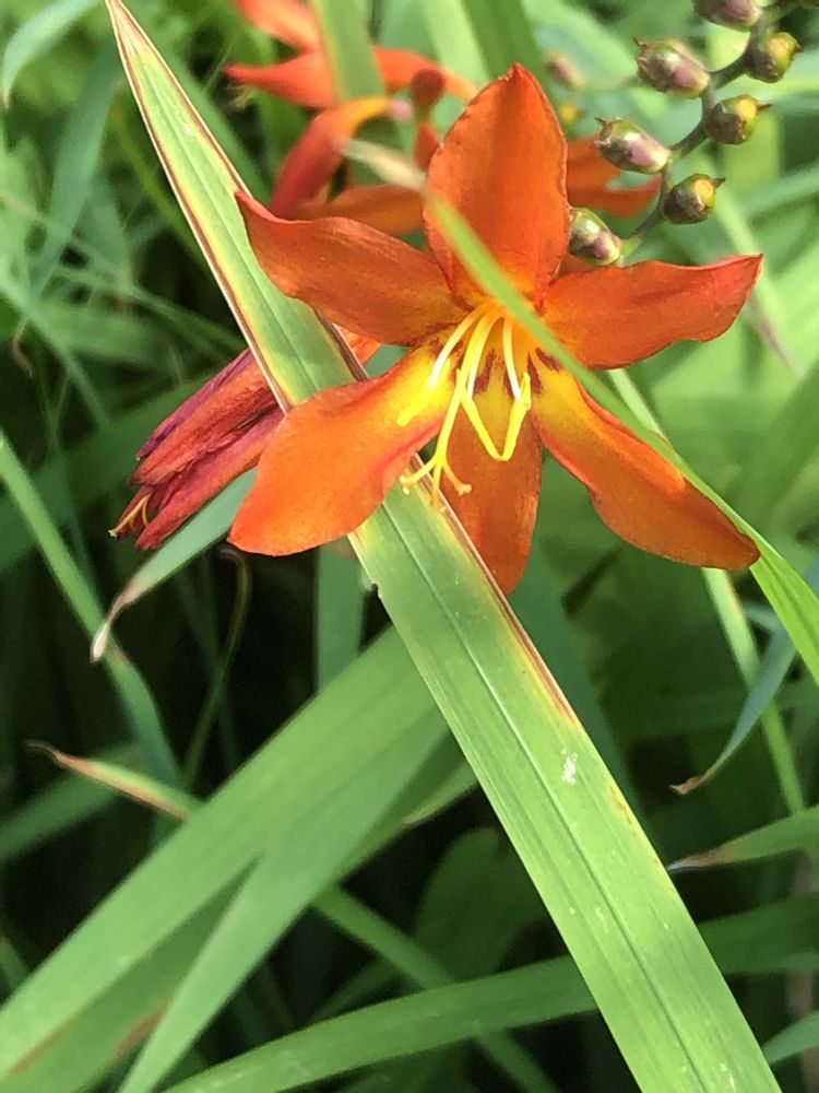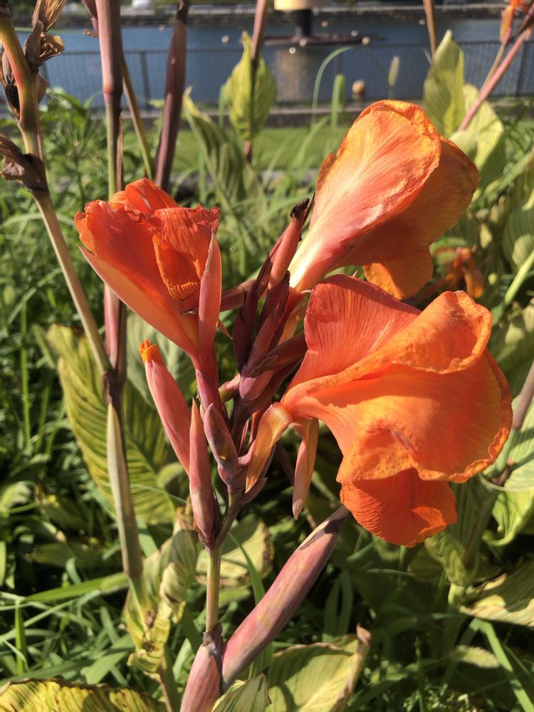 とっても鮮やかな🧡のカンナさんとヒメオウギズイセンさんですね😍😍😍