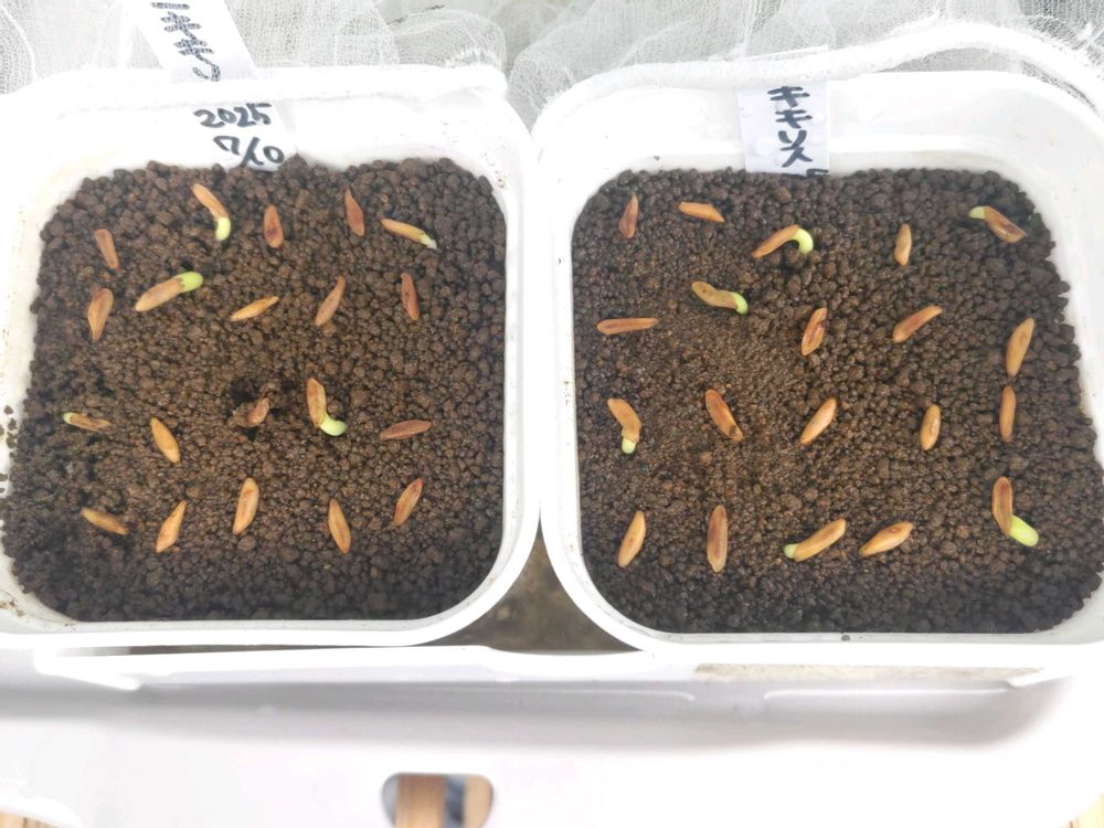ミキキリスの種、第1弾で蒔いたグラ種よりかなり大きいです😍